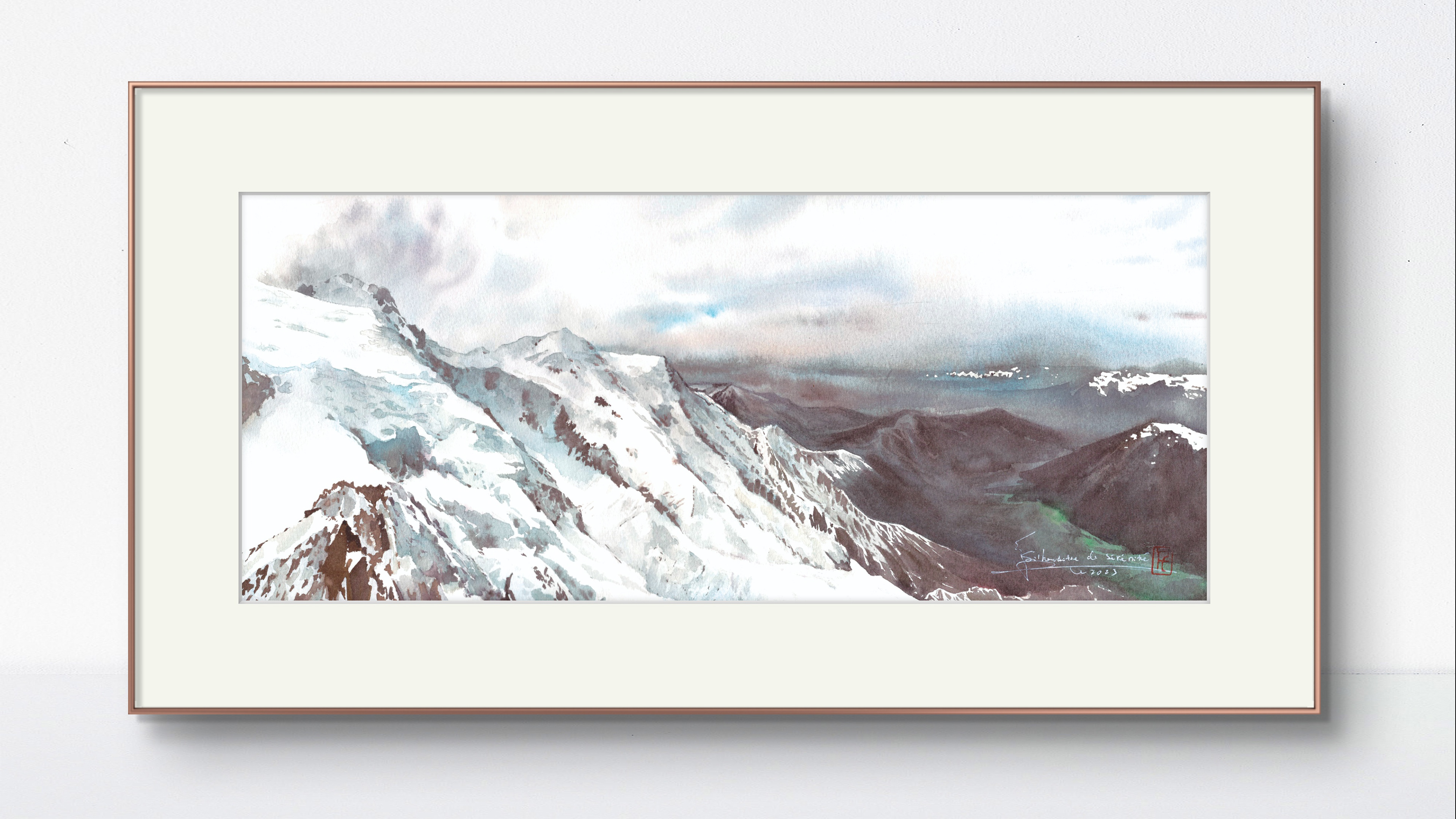 « Léger souffle des monts » est pour l’artiste comme le battement discret d’un cœur vibrant, une œuvre où se cristallisent des émotions profondes et un regard intime sur la nature. Elle invite le spectateur à sentir la quiétude des montagnes, entendre le silence bruissant du paysage, et se perdre dans les échos d’une sérénité intemporelle. Plus qu’une image, c’est une réflexion, un moment suspendu entre la nature et l’esprit.