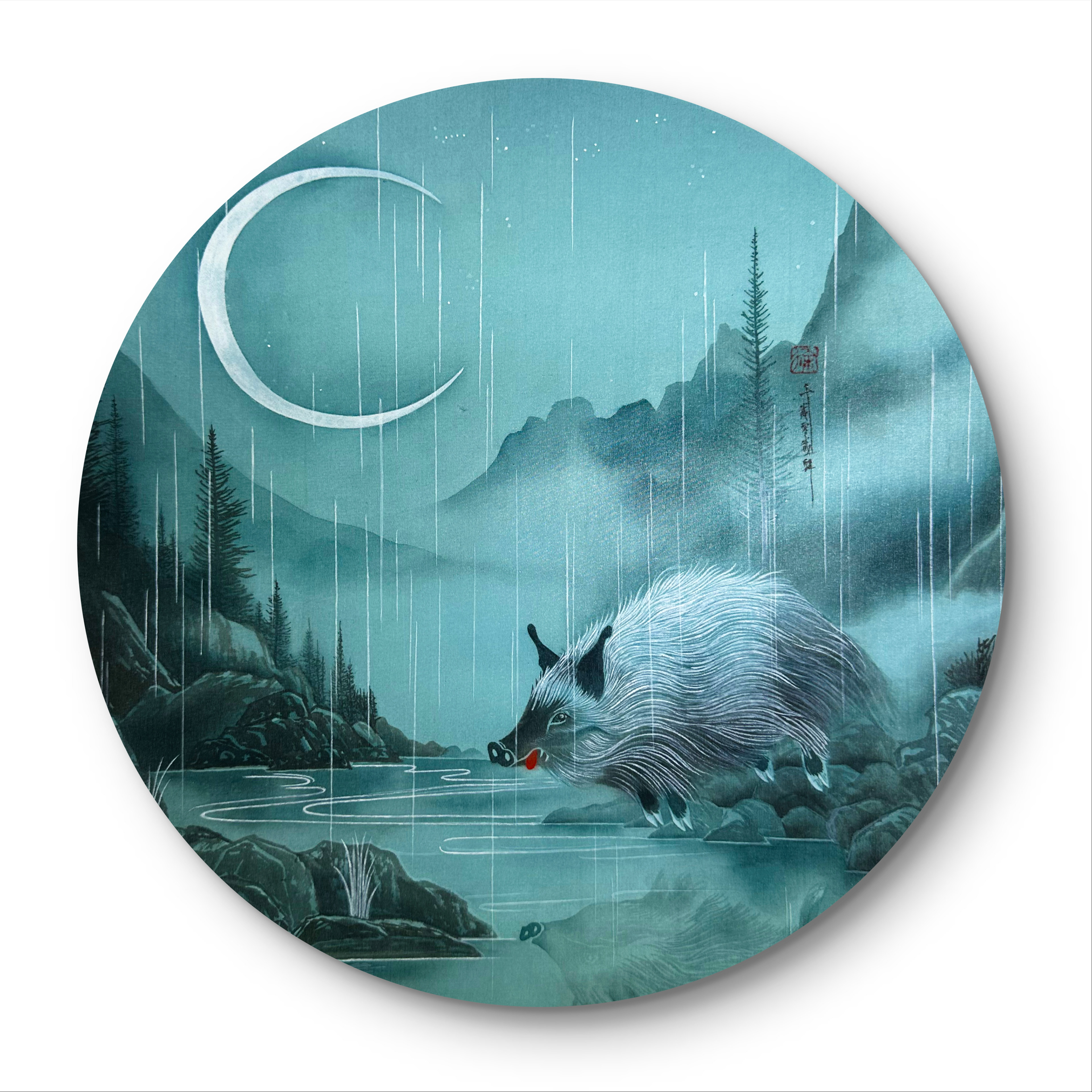 Pigments chinois sur papier de riz, 32 x 32 cm | Présentée à la galerie M’Artchissy dans le canton de Vaud (Suisse) en novembre 2024, au Grand Palais à Paris dans le cadre du Salon Art Capital 2025, puis à la Galerie Looloolook du 23 février au 2 mars 2025, à la Galerie Esprit d’Escaliers à Paris en août 2025, et au Salon Animalier de Montherod en Suisse en septembre 2025.